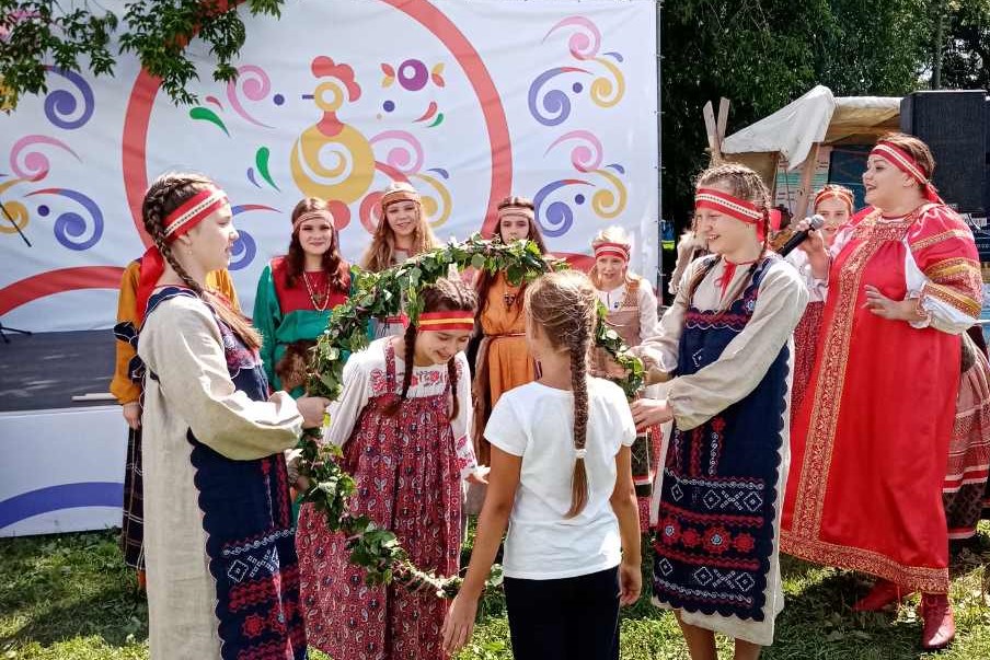 Народный коллектив самодеятельного творчества студия мод «Театр образа» (г. Шуя) выступала на Ярмарочной площади, где гости могли познакомиться с народными промыслами, поучаствовать в мастер-классах и квестах, посмотреть представления народных гуляний из разных регионов. Коллектив студии «Театр образа» показывал сценку - реконструкцию исторического обряда, - в которой участники коллектива, одетые в воссозданные исторические костюмы, совершали Троицкие гуляния.