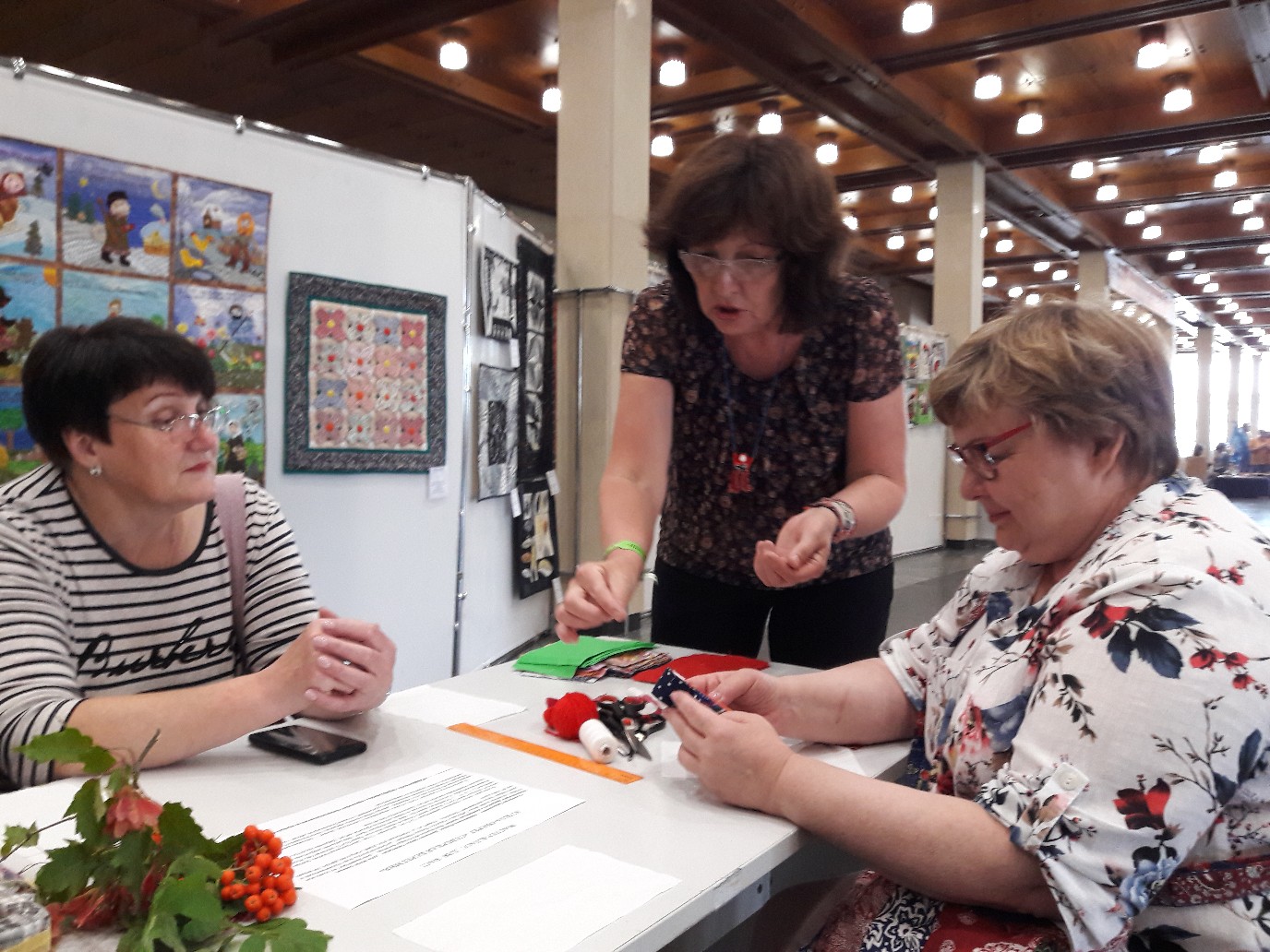 Добавим, что Международный фестиваль лоскутного шитья "Душа России" проходил в Суздале с 7 по 12 августа 2019 года. В течение всех дней члены клуба "Русский стиль" проводили в фойе ГТК "Суздаль" бесплатные мастер-классы по народной кукле, по брошкам и браслетам в стиле бохо, по вышивке "боро". В мастер-классах принимали участие и дети, и взрослые, в том числе участницы фестиваля, приехавшие из Кореи.