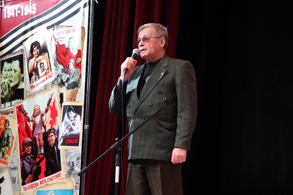 В концерте прозвучали песни военно-патриотической направленности, сопровождаемые видеорядом из советских фильмов и военной кинохроники. Ведущий программы - заслуженный работник культуры РФ В.В. Маслов.