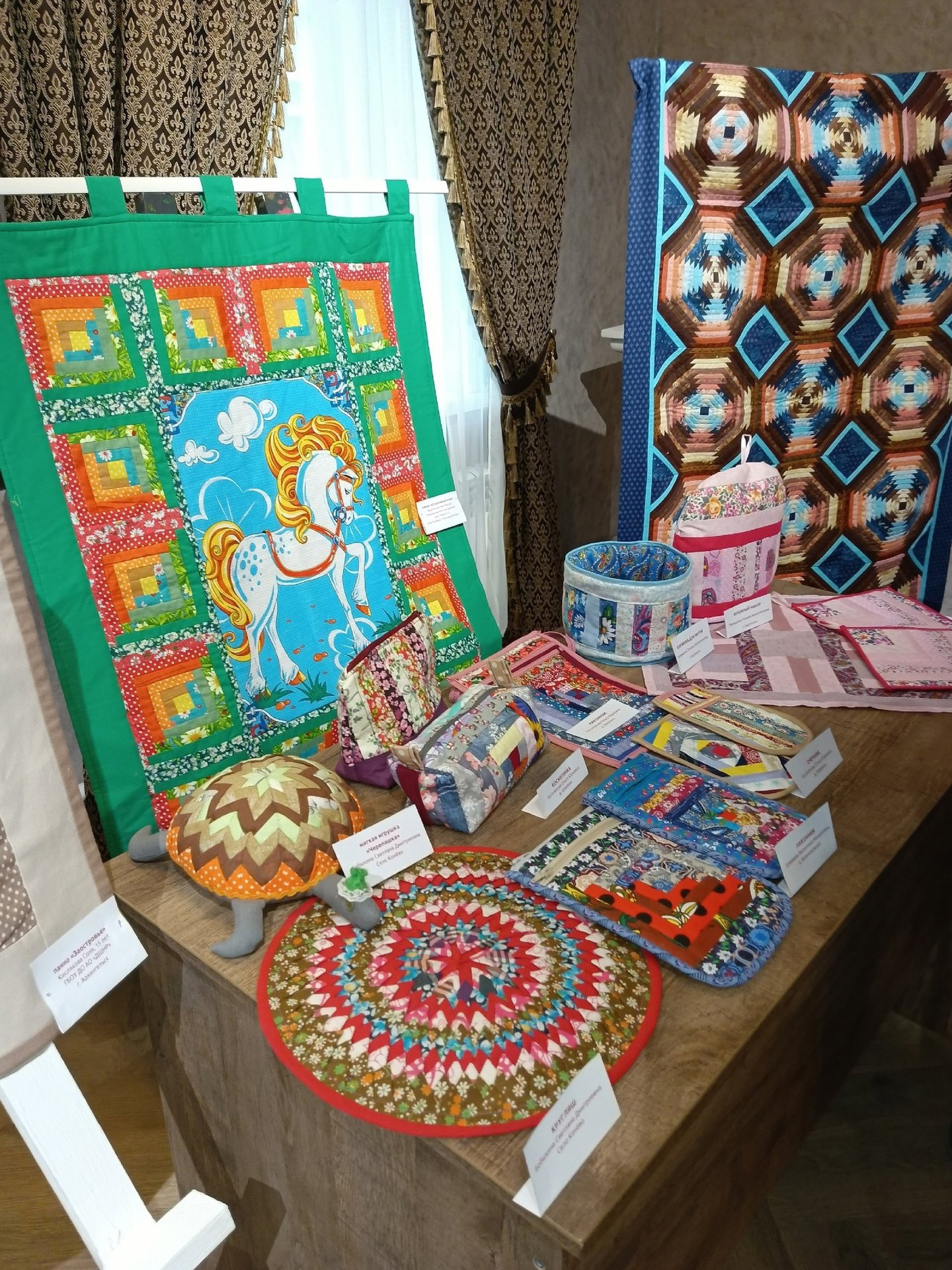 В этот же день состоялось открытие выставки «ОсеНины. От лоскутка к шедевру», для которой Марина Тулупова привезла несколько работ – квилт участницы клуба Евгении Маловой и часть международного проекта «Русский стиль в лоскутном шитье». Символично, что I место в блиц-конкурсе по пошиву лакомников заняла Ирина Колодина из г. Плесецк, первой приславшая свой квилт для проекта «Русский стиль в лоскутном шитье». Проект будет экспонироваться в Каргополе до 8 декабря.