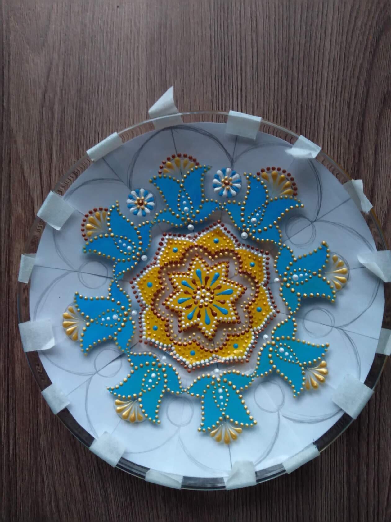 - Если вы выбрали непрозрачную поверхность, то нанесите рисунок карандашом, если же поверхность прозрачная, можно прикрепить схему для росписи с обратной стороны.
