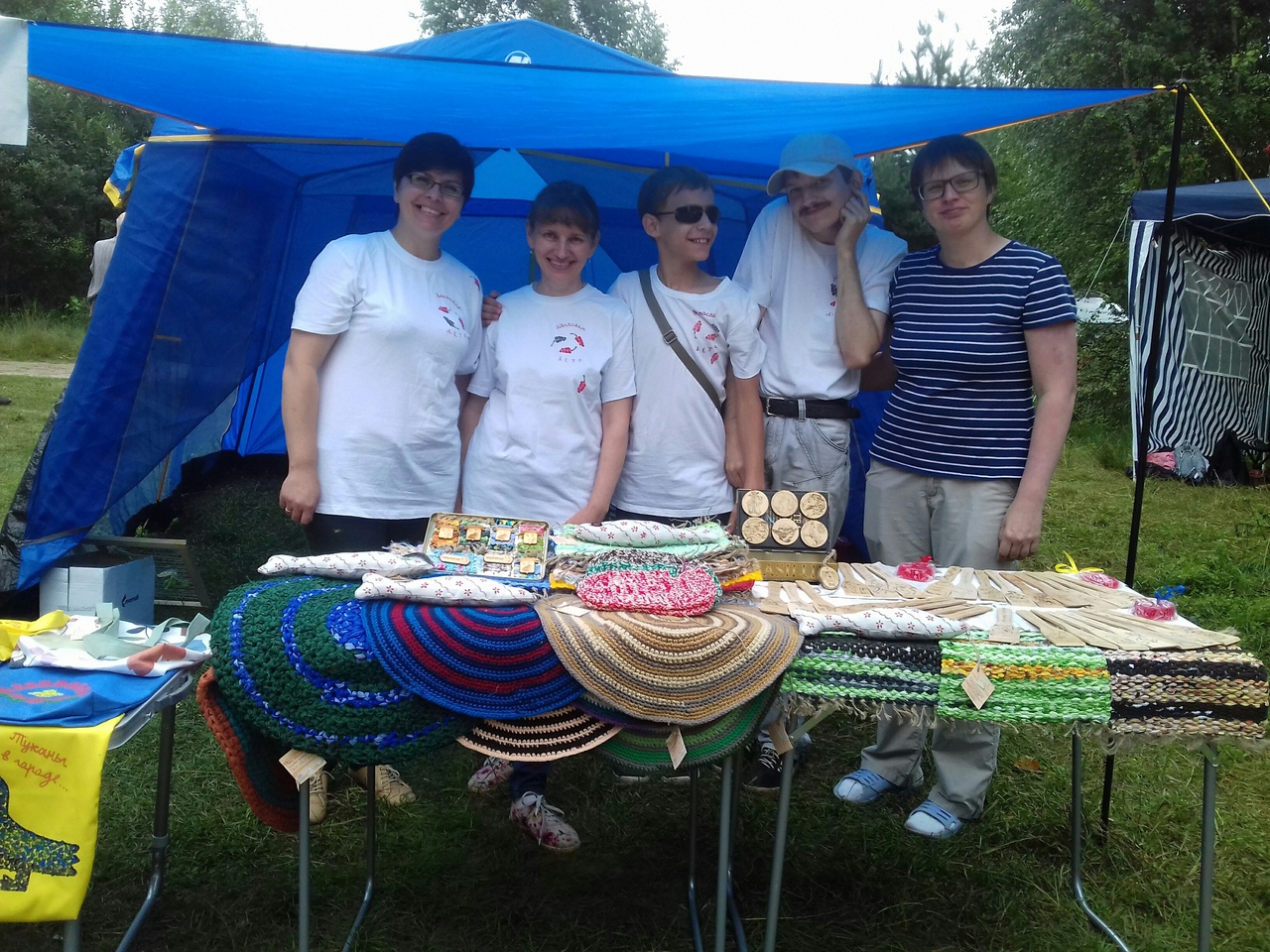 Увлекательные мастер-классы по ткачеству на рамке и лоскутной аппликации провели для гостей фестиваля мамы и ребята из общественной организации молодых инвалидов и их родителей "Грани". Большим спросом пользовались изделия ребят из "Граней" - кухонные лопатки с пирографией, тканые браслеты и магнитики, вязаные коврики, экосумки и мешочки с печатью на ткани.