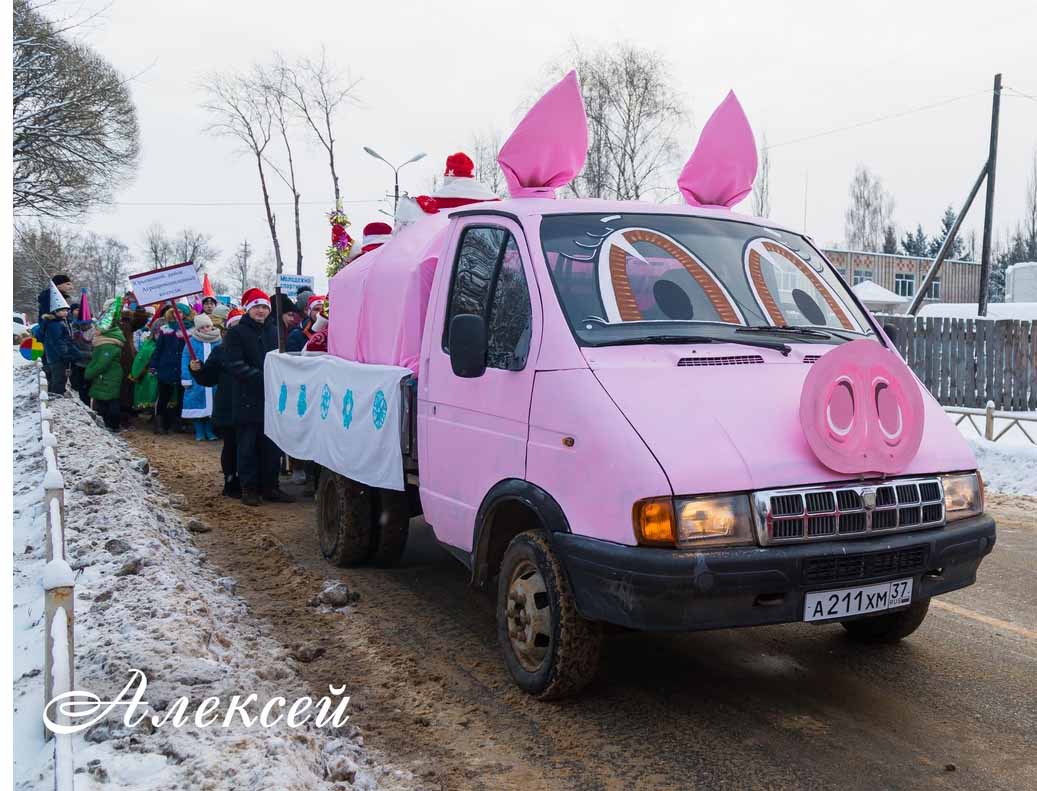 В г. Родники съехались Деды Морозы из Вичугского, Юрьевецкого и Родниковского районов. У каждого Деда Мороза своя свита: внучка Снегурочка и герои волшебных сказок. Открылся конкурс на площадке у районного Дома культуры «Лидер», куда Деды Морозы прибыли на символе Нового года – розовом поросенке.