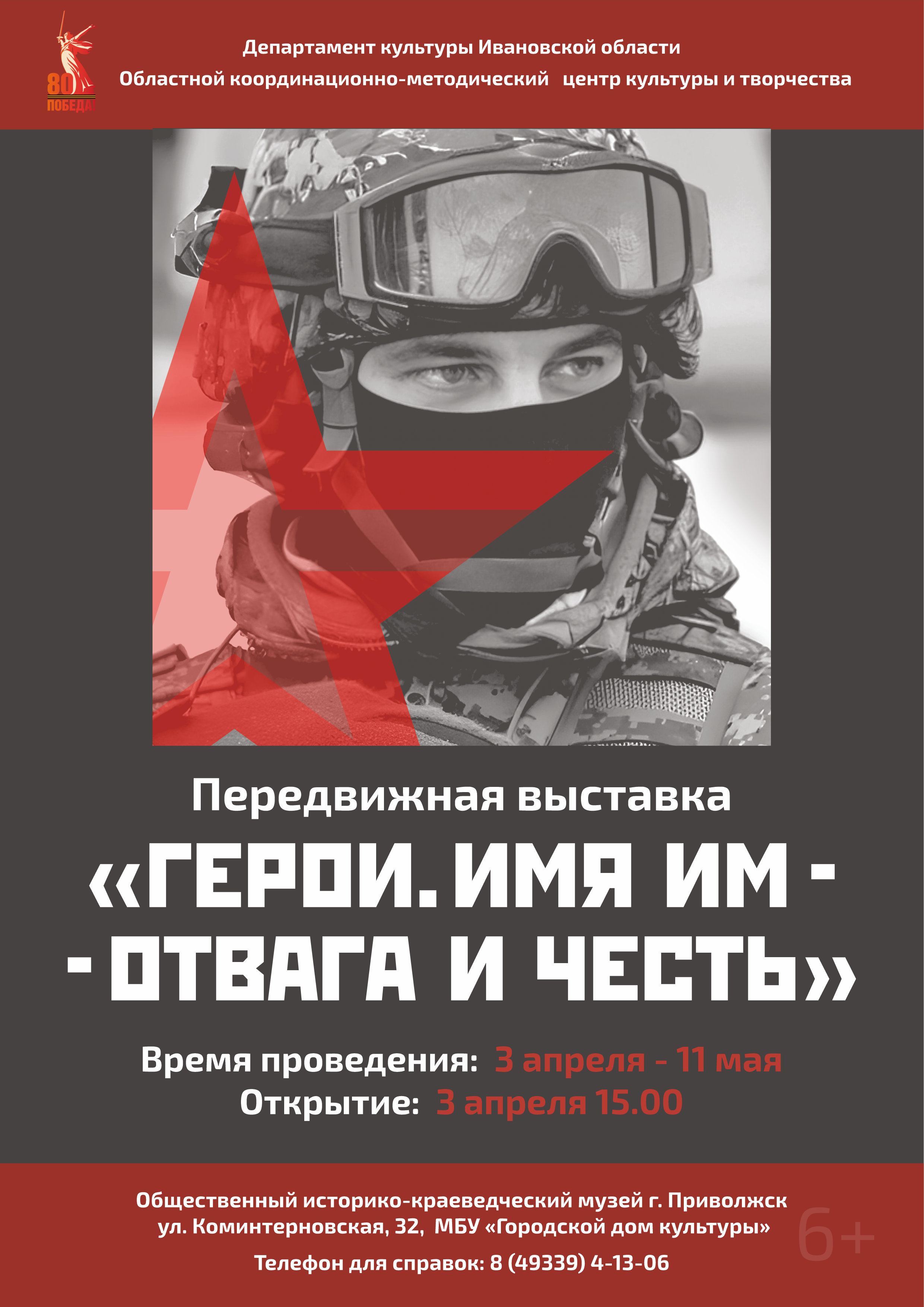 Открытие областной передвижной выставки «Герои. Имя им – отвага и честь» в новом формате состоится 3 апреля в 15.00 в Общественном историко-краеведческом музее г. Приволжск.