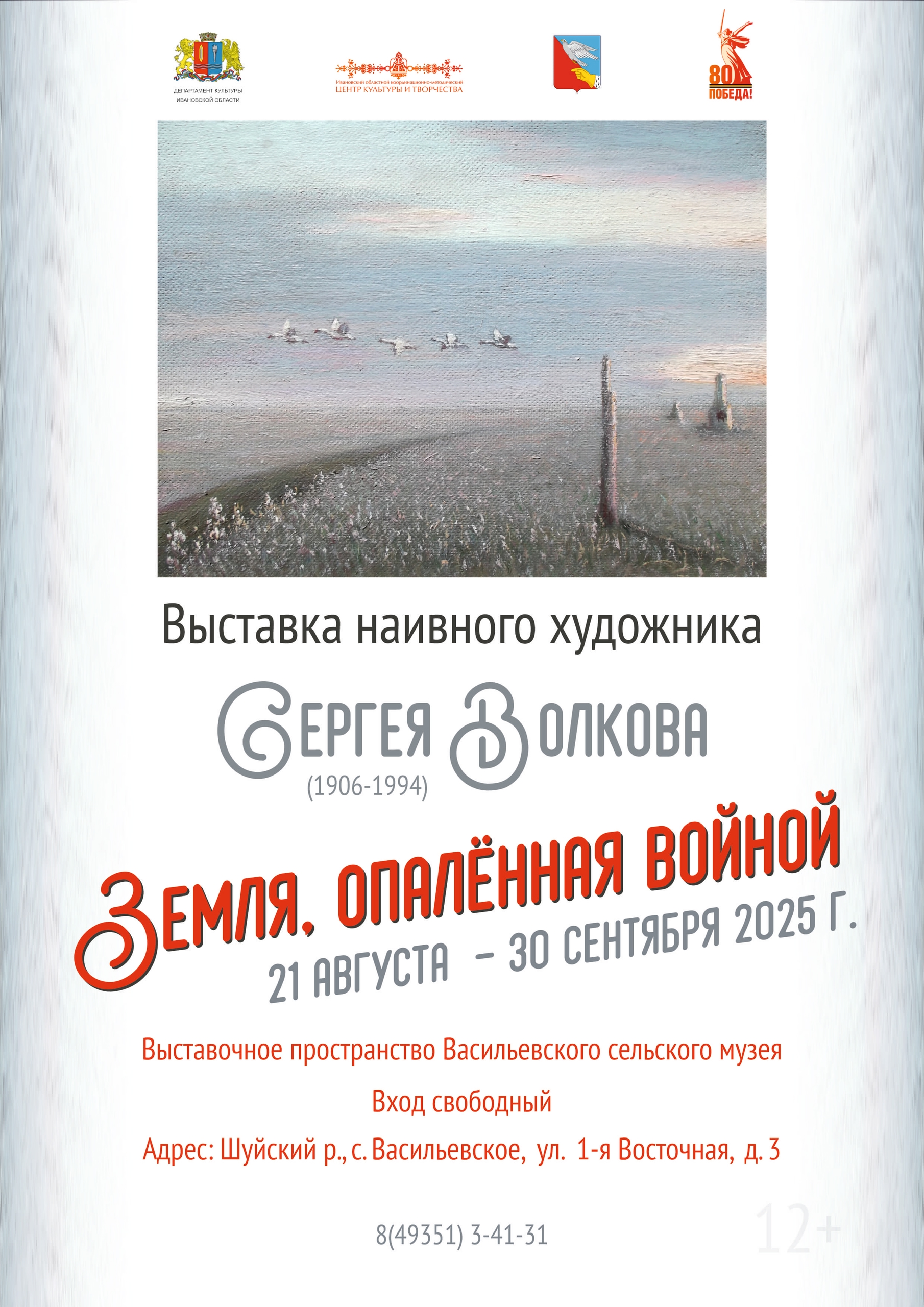 http://www.xn--b1alhe9ae8d.xn--p1ai/proekty/vistavki/4111-ves-sentyabr-v-kraevedcheskom-muzee-sela-vasilevskoe-shujskogo-rajona-rabotaet-vystavka-khudozhnika-frontovika-sergeya-volkova-zemlya-opaljonnaya-vojnoj-posvyashchjonnaya-80-letiyu-pobedy-v-velikoj-otechestvennoj-vojne-3#sigFreeId5810ad0a59