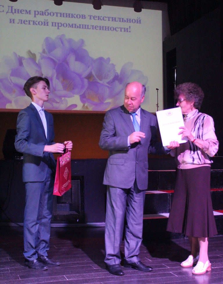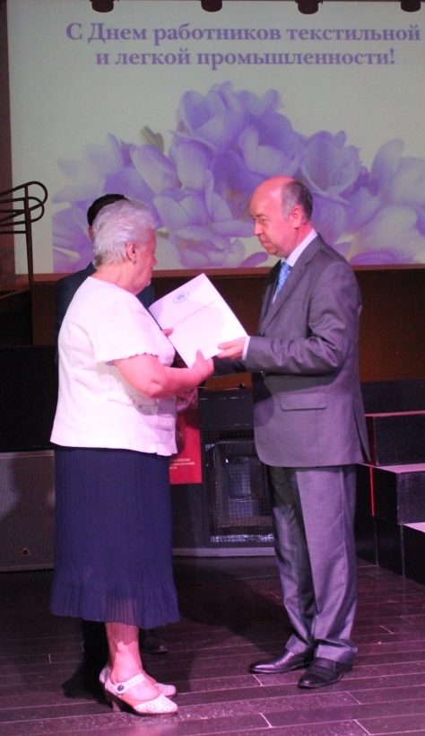 С профессиональным праздником текстильщиков поздравил депутат Государственной Думы Валерий Иванов, который вручил благодарности ветеранам текстильного производства. От имени правительства Ивановской области с праздником работников текстильной и лёгкой промышленности поздравила директор регионального департамента экономического развития и торговли Людмила Бадак. Лучшим представителям отрасли вручены почетные грамоты и благодарности губернатора Ивановской области, нагрудные знаки «Почетный работник текстильной и легкой промышленности Ивановской области». Директор областного координационно-методического центра культуры и творчества Ольга Кривцова рассказала участникам мероприятия о XII Всероссийском фестивале декоративно-прикладного искусства «Лоскутная мозаика России».