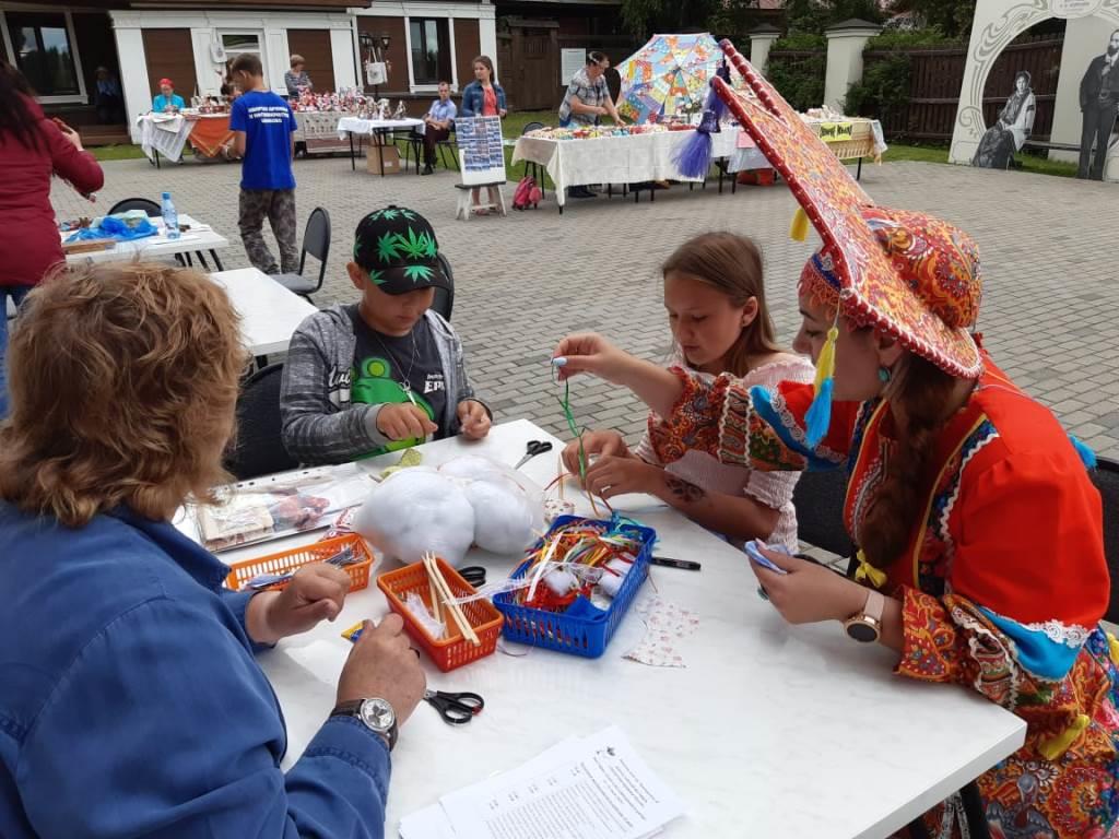 В течение всего дня здесь проходили мастер-классы по азам ручного ткачества, ситцевой бутафории, лоскутной аппликации и шитью, мягкой игрушке, обережной кукле, глиняной игрушке, украшениям из фоамирана, резьбе по дереву.