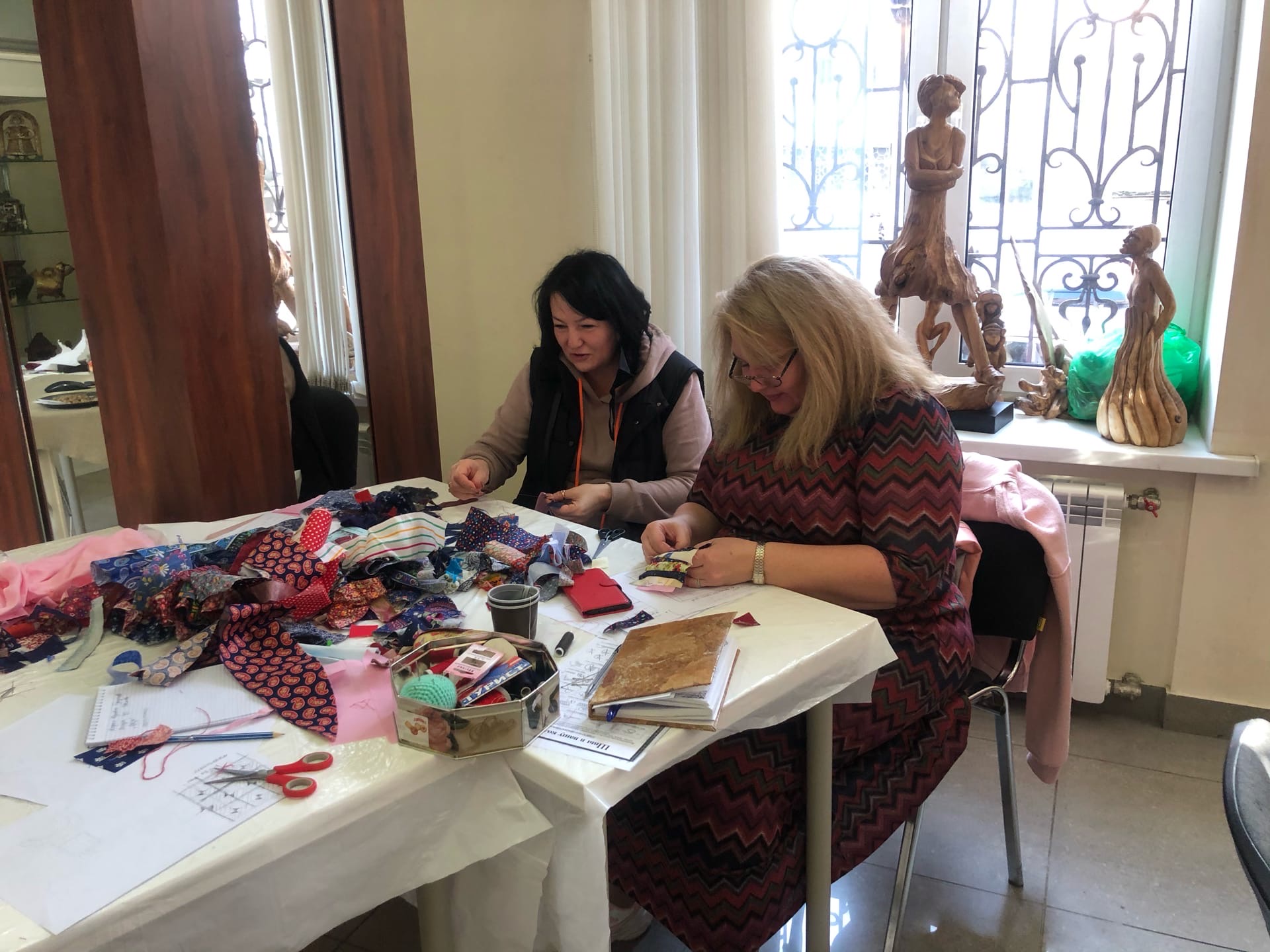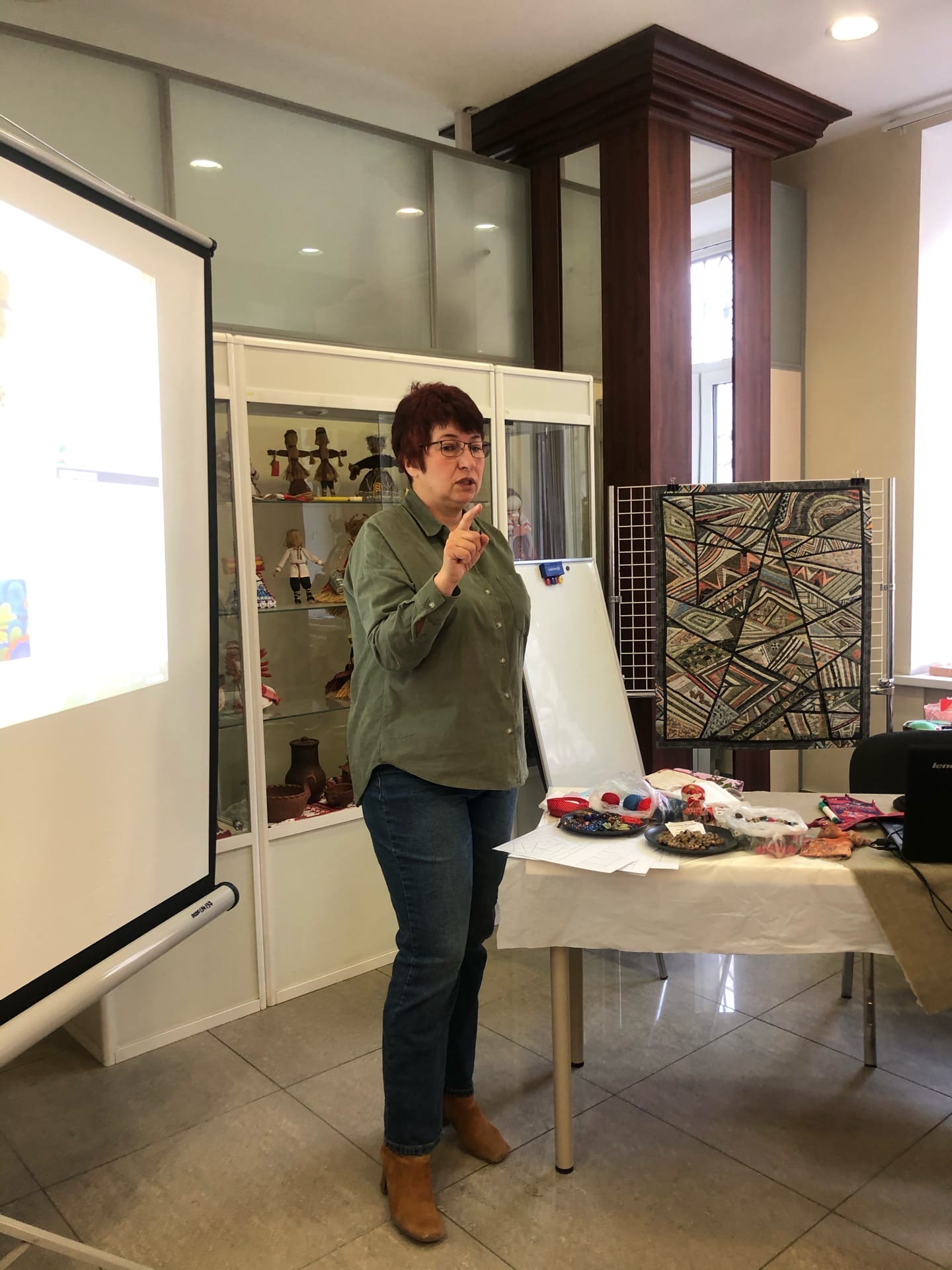 Напомним, что мероприятие планировалось провести еще в апреле. Но в виду сложной эпидемиологической обстановки, он был перенесен. Главным гостем на встрече стал руководитель клуба лоскутного шитья «Лоскутная мозаика» - Марина Юрьевна Тулупова. Она познакомила участниц семинара с такой интересной техникой лоскутного шитья, как «крейзи квилт». Ученицы выполнили самостоятельно нагрудное украшение.