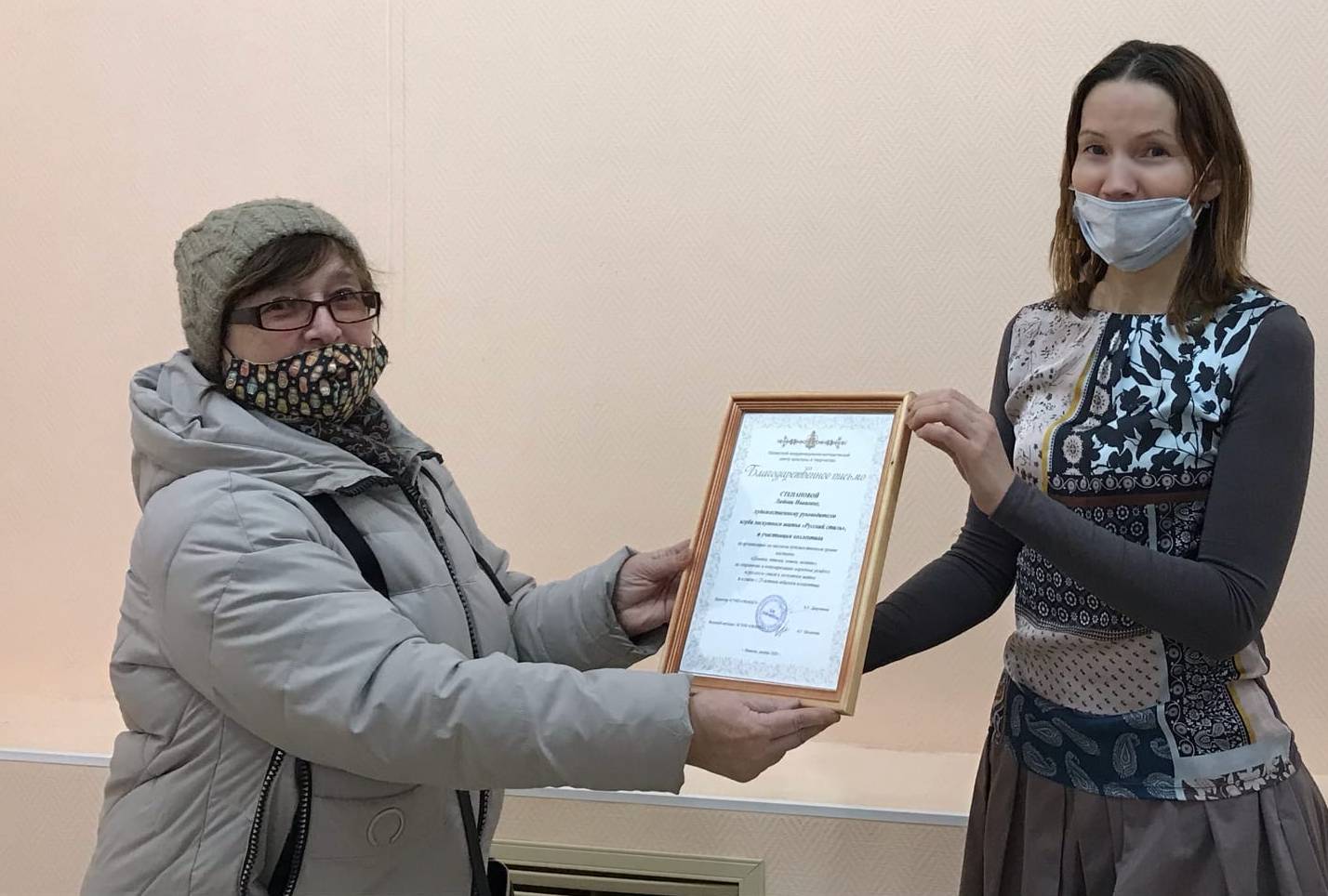 С 23 июня она проходила в онлайн-формате на страницах областного центра культуры и творчества в соцсетях, а с 1 ноября зал был открыт для индивидуального посещения. В завершении выставки руководителю клуба Любови Степановой было вручено благодарственное письмо от директора ОКМЦКТ Е.С. Дворниковой «за организацию экспозиции на высоком художественном уровне, за сохранение и популяризацию народных ремёсел и русского стиля в лоскутном шитье и в связи с 25-летним юбилеем коллектива».