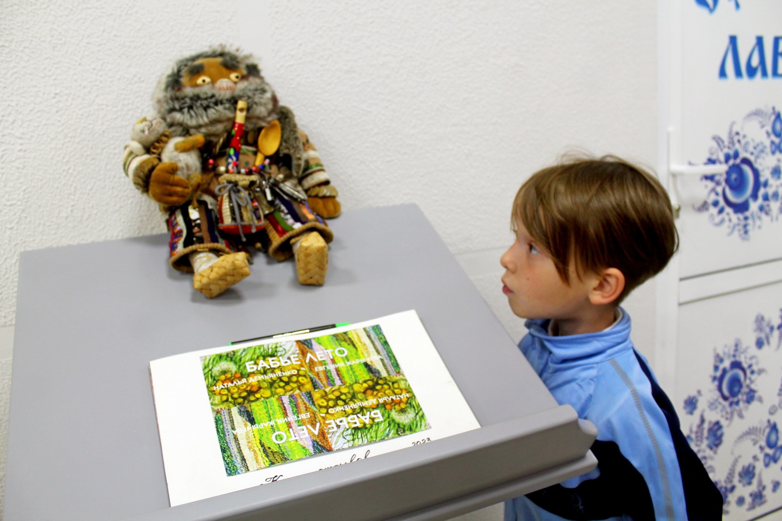 Посетители смогут увидеть здесь пейзажи, натюрморты с цветами, жанровые композиции на сказочные сюжеты древнеславянской мифологии авторства Натальи Демьяненко, её забавных кукол в образе духов домашнего очага и персонажей народных праздничных обрядов, а также образные гобелены Евгении Жарычевой, выполненные в традиционной технике полотняного переплетения из хлопка и смесовой пряжи.