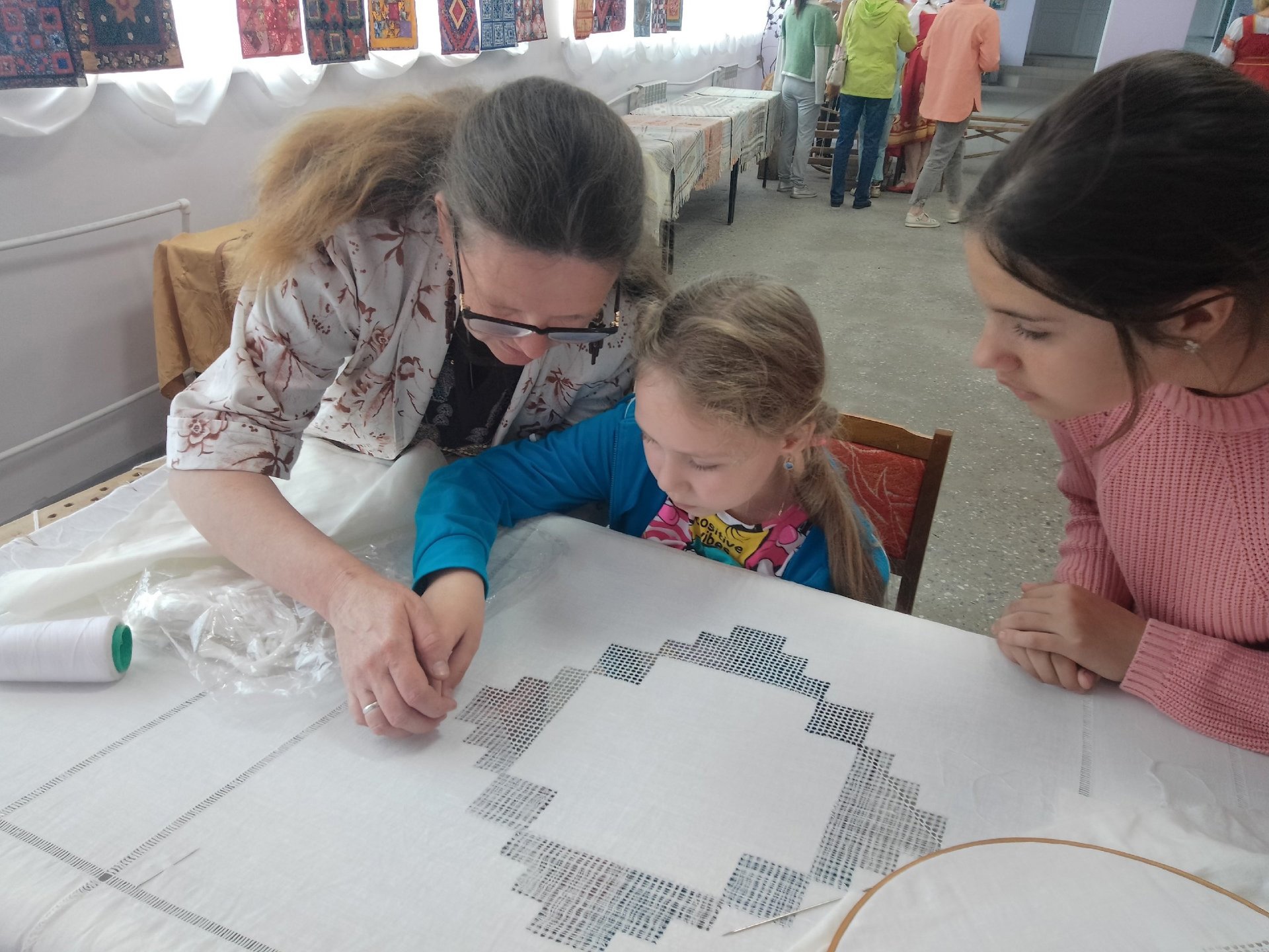 Во время работы выставки состоялась творческая встреча жителей села Тимирязево с сотрудницами «Лукового терема» посёлка Лух Ириной Симаковой и Надеждой Филатовой, которые участвовали в создании вышитой карты Ивановской области и специально для оформления фрагмента, соответствующего Лухскому району, изучали лухскую строчевую вышивку. Они продемонстрировали гостям пяльца с заправленной под разделку тканью, показали схемы, которые использовались на Лухской строчевышивальной фабрике, и старые фотографии. Методист Тимирязевского КДК Нина Тюрина познакомила школьников, пришедших на выставку, ещё с одним традиционных ремеслом – ручным ткачеством на стане.