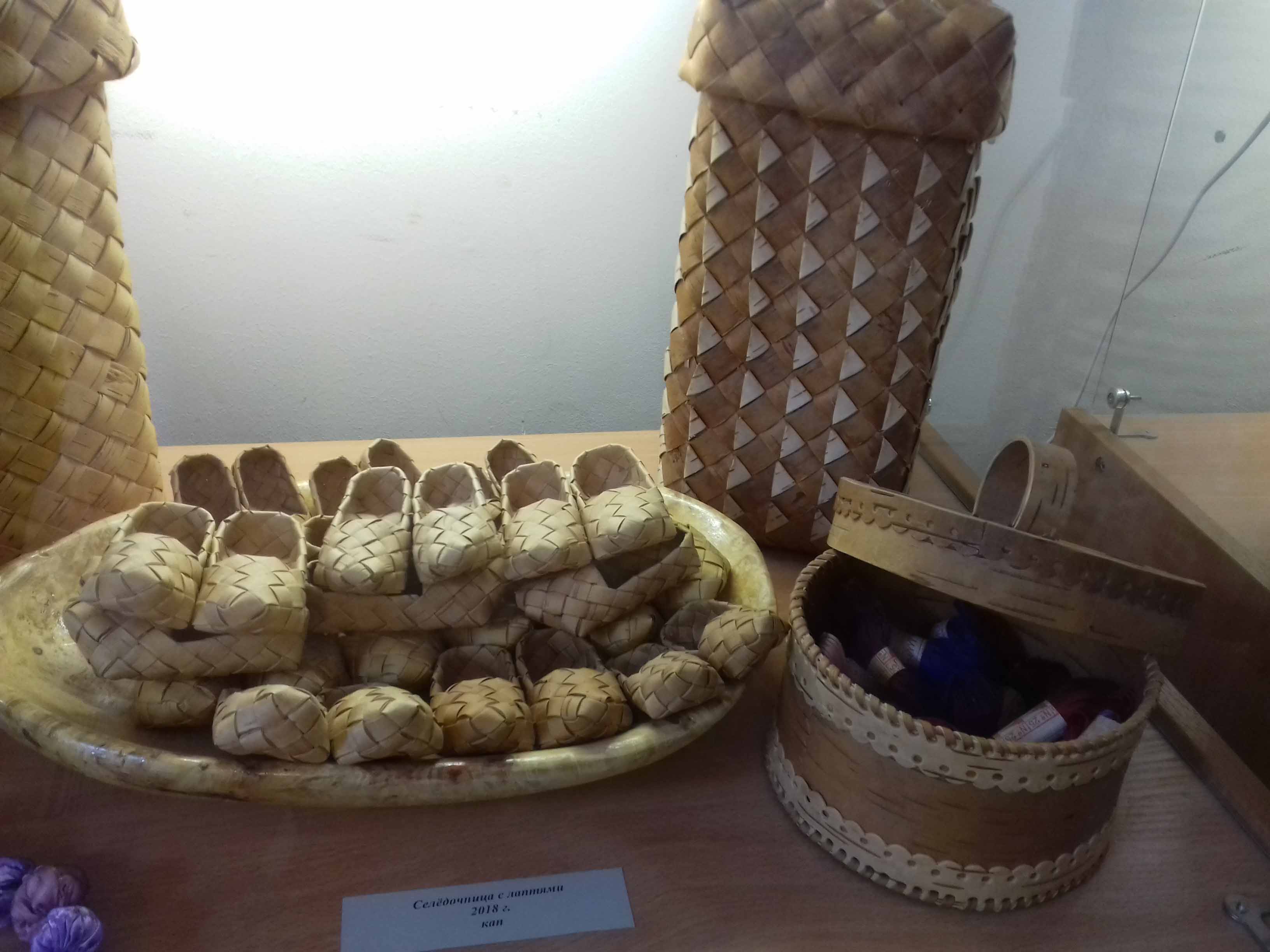 Алексей Фёдорович занимается берестоплетением много лет. По его словам, творческий потенциал и желание заниматься ремеслом почувствовал в себе после рождения дочери. На выставке можно увидеть изящные туеса, корзинки, лапти и лапотки, самовар с чашечками, сухарницы, конфетницы, броши, кулоны. Всего представлено около 90 работ.