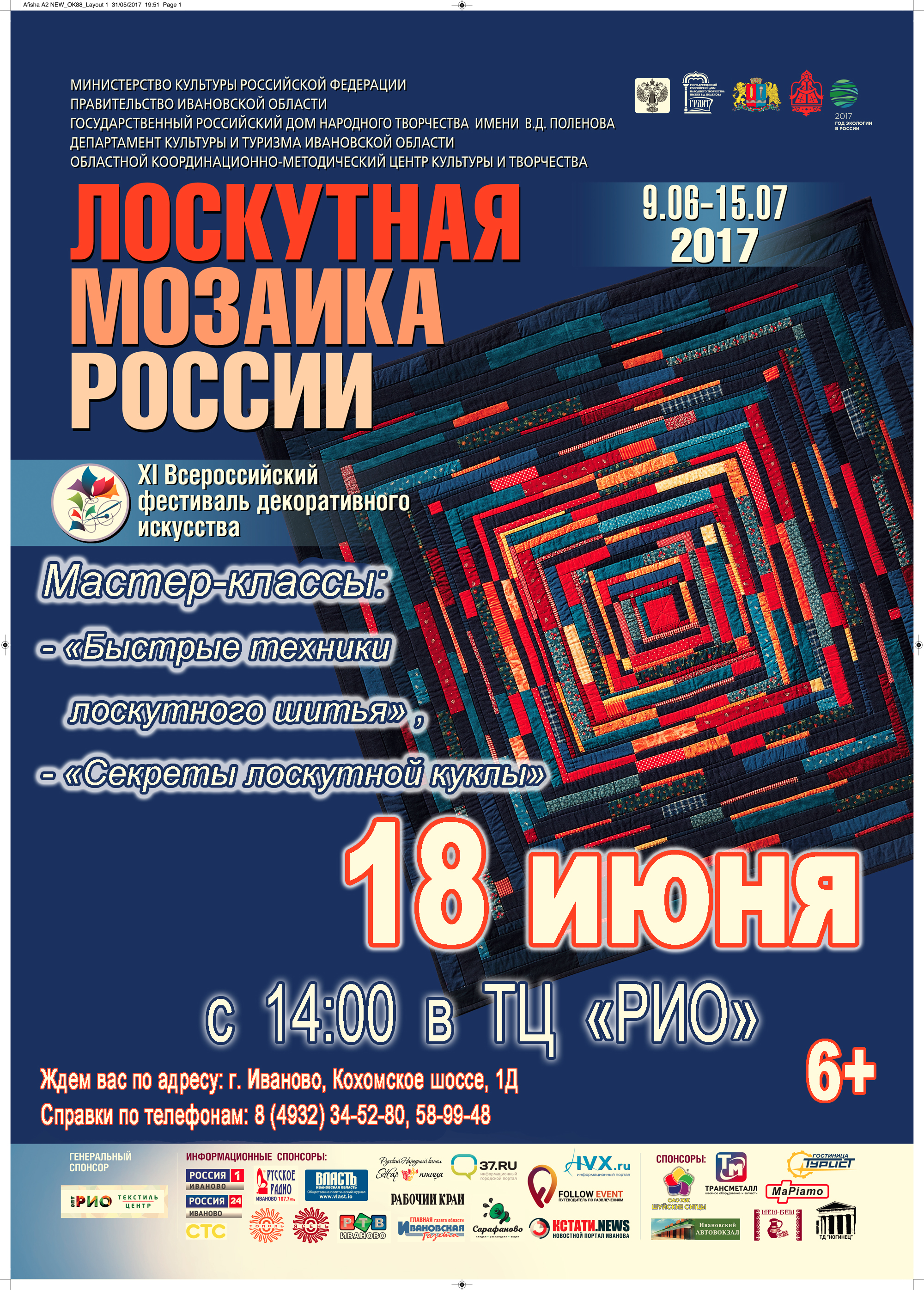 Работы, представленные в художественном музее, только часть конкурсных заявок. Всего их более 450, и демонстрируются они на шести площадках: в Иванове - это Дом художника (пр. Ленина, 45) и выставочный зал Центра культуры и творчества (ул. К. Маркса, 62/107), кроме того, лоскутное волшебство увидят гости Фурмановской картинной галереи им. Д.А. Трубникова, Шуйского музея им. М.В. Фрунзе, Родниковского туристического центра.
